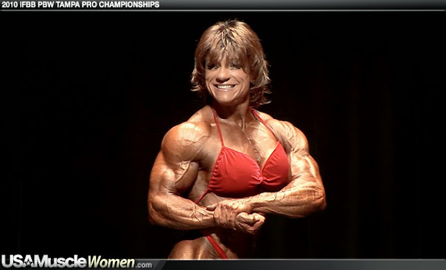 One of my favourite topics as you have probably guessed. Some transformations deserve a post of their own. Here we can see her already muscular physique in 2007. She got serious about bodybuilding in 1997, so bear in mind that that 2007 picture was her a whole ten years of bodybuilding, she must have been way small in the beginning! And what can be said of her further transformation that took place in the following 5 years. Take a look at her further progress in 2012. She's a beast, she has added what looks to be a good 25-30 lbs maybe more to her already impressive physique. Compare her back, shoulders arms and legs in the 2 pictures, amazing growth! I love it. I love seeing the progress. For someone to grow this much, they have to want it, she obviously LOVES being HUGE. I wonder if we'll see further progress? Is it possible that she could become even bigger? I know she's definitely in my top 20.